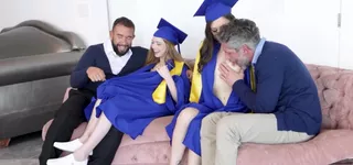 For graduation, submissive teens Maya and Myra receive the ultimate gift—throbbing cocks filling and pleasing them like never before.