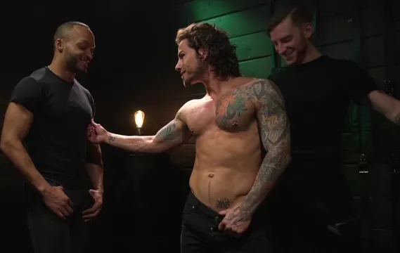 Archer Croft is tied up, helpless, and teased to the edge while two relentless tops take turns fucking him hard. With a pierced cock and no escape, he’s pushed past his limits. It’s intense—press play and watch him break.