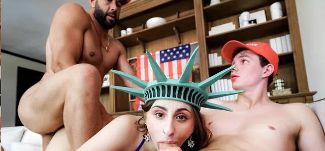 Stepdaughter Penelope Kay plays with Josh Rivers’ cock in the living room, turning a “practical class” into an unmissable Fourth of July celebration of lust and pleasure.
