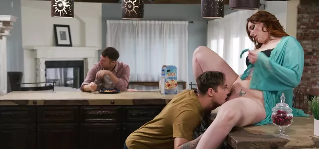 Jayden nails Siri in the kitchen while her boyfriend watches helplessly.