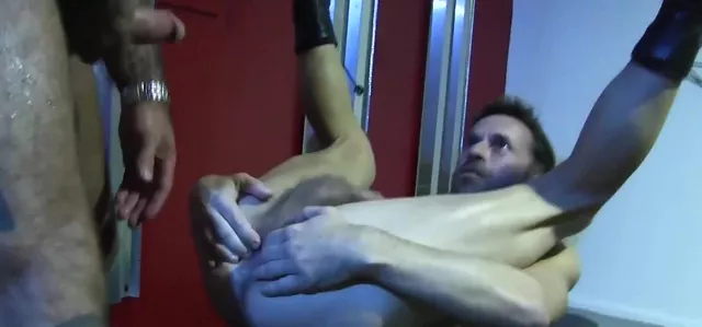 Rough bareback pounding leaves his bottom stretched and moaning before the top coats his ass in hot cum.