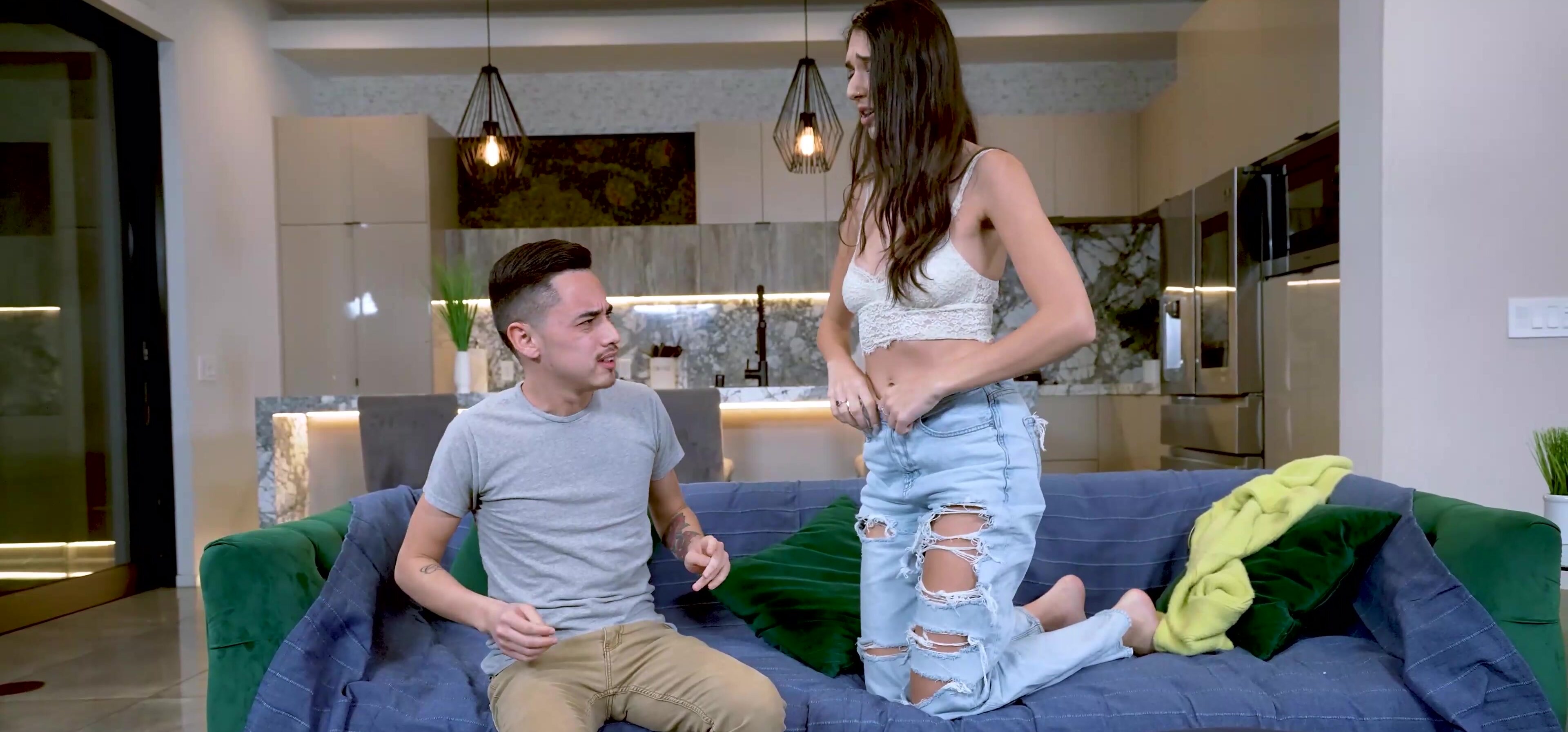 With the house empty, Aria Sloane wastes no time unzipping her stepbro’s pants. She sucks him slow, teasing before climbing on and riding him raw. Her tits bounce as she moans his name, taking every inch like she’s been waiting years.