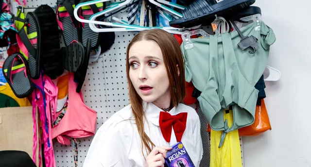 Laney steals condoms for her hookup but gets caught by the store’s security. Instead of trouble, she finds herself on her knees, gagging around the mall cop’s cock before he takes her hard. Watch the naughty bust go down.