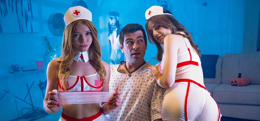 Hardcore pussy fucking in escape room with hot stepsister and her stepbro so horny nurse teens fucked by big dick stepbrother Hot teens in costume swallowed big hard dick After double blowjob and deepthroat teens enjoyed rough sex