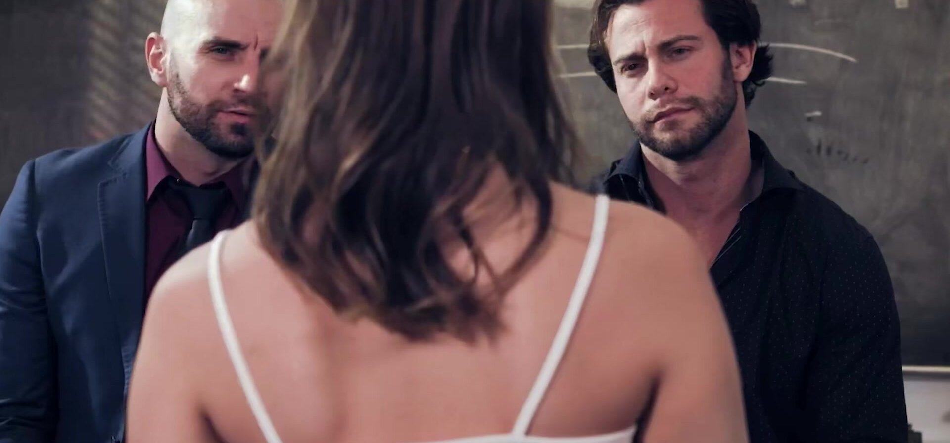 Teen student Gwen Vicious is a loner with no friends,but her teachers are more than happy to be her friends.All she needs to do is kneel down and suck off both their cocks.The small tits coed is double penetrated on the desk by the horny guys