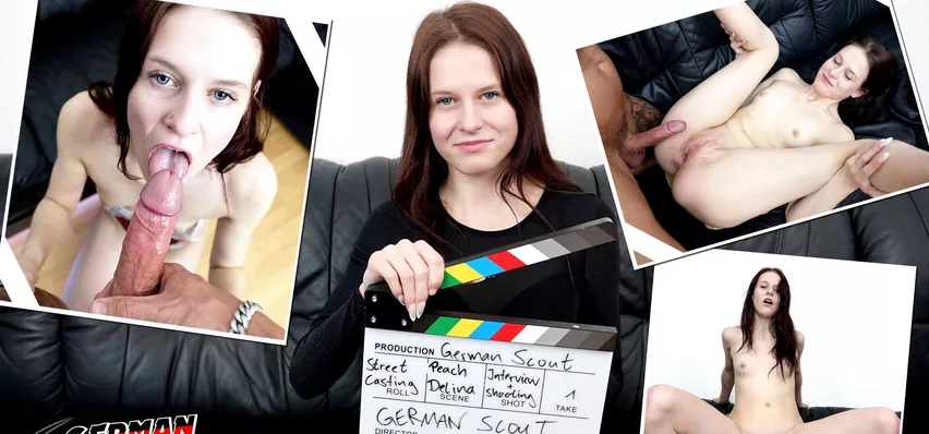 GERMAN SCOUT - Small Redhead Teen Peach Delina Pick Up for First Casting Fuck
